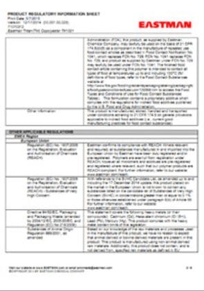 Berikut adalah beberapa instansi internasional yang sudah menyetujui plastik tritan untuk digunakan